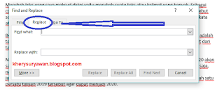 2. Untuk dapat mengganti tulisan 2020/2021 menjadi 2020 di word 2016 maka silahkan klik menu Ctrl + H pada keyboard computer/laptop anda, seperti terlihat pada gambar di bawah ini